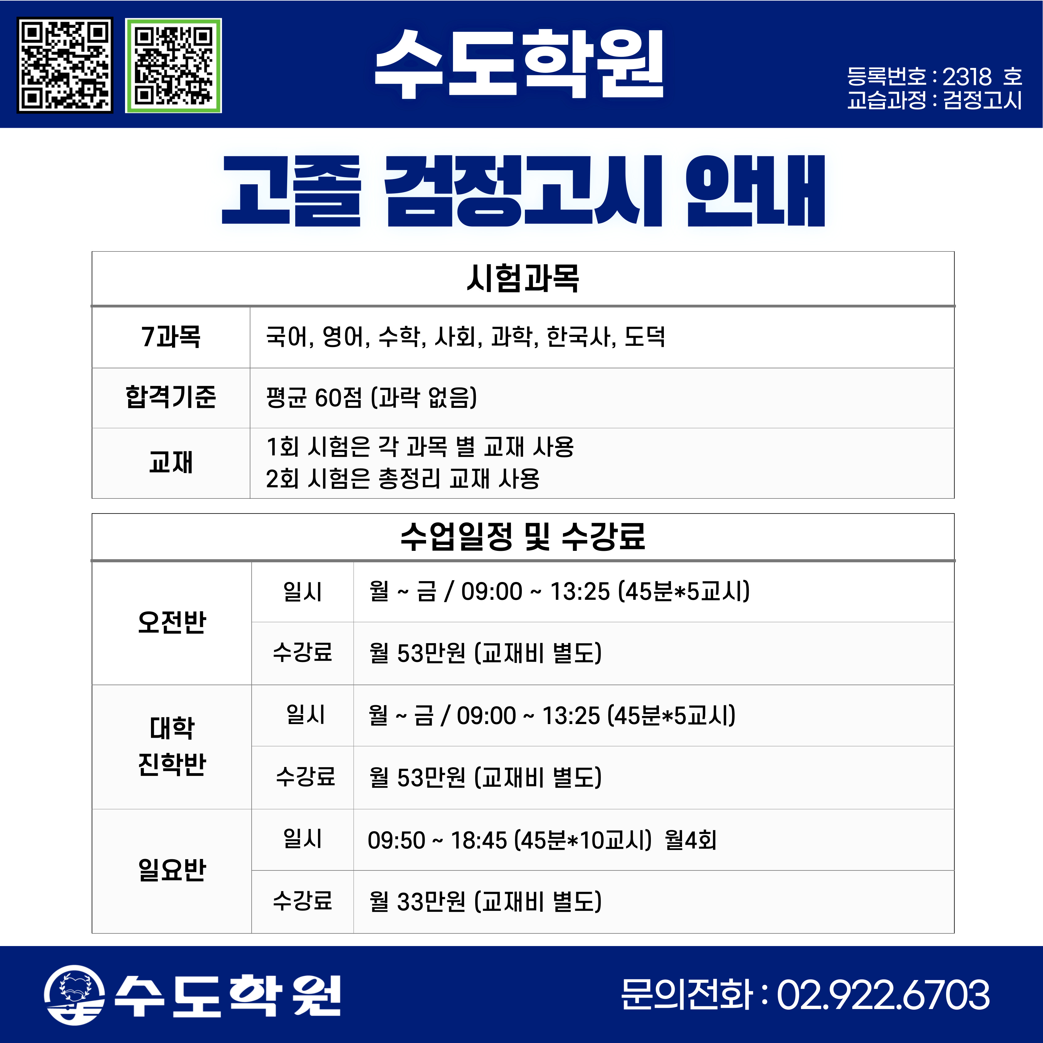 검정고시는 서울 신설동역 1번출구, 수도학원 !!