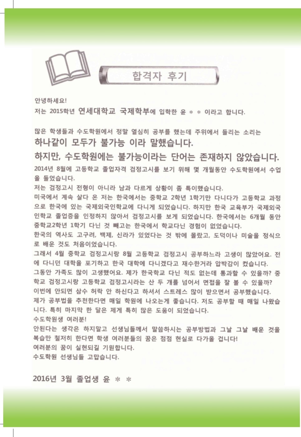 연세대학교 합격후기